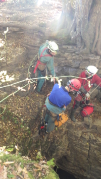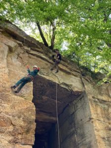 Un temps pour se mettre à la spéléo ! Que ce soit pour simplement pratiquer ou travailler l’équipement, le plaisir c’est aussi de passer un moment tous ensemble. Une belle journée pendant laquelle l’équipe a été divisée en plusieurs groupes réparties sur différents ateliers. Des parois avec montées et descentes, du parcours dans les rochers avec étroitures mais sans matériel et du passage de vire au plus haut des rochers. Pour finir avec un petit rappel guidé installé par Eric et Guillaume.