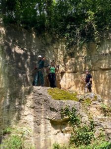 La carrière des Vignes, située sur la commune de Maysel dans l’Oise, est une carrière à ciel ouvert aménagée pour les entraînements spéléo. Nous avons été invité par les collègues du SCB pour un entrainement spéléo, un barbecue et un bivouac en plein cœur de la forêt. C’est un espace protégé qui permet d’installer des parcours pour se former à la progression sur corde ou à l’équipement mais aussi pour perfectionner sa technique.